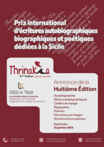 Thrinakìa 8ème éditionPrix international d’écritures autobiographiques, biographiques et poétiques dédiées à la Sicile La huitième édition de Thrinakìa, prix international d’écritures autobiographiques, biographiques et poétiques dédiées…
